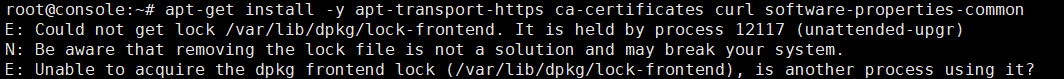 처음 E를 보면 It is held by process XXXX처럼 프로세스 넘버가 나올 것이다. 이 번호가 문제를 일으키고 있음으로 제거해 주면 이어서 다운로드가 가능하다. 따라서 이와 같은 오류가 나올 때는 다음 명령어를 입력해준다.