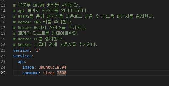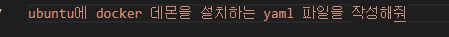 왜 안되나 했더니 컨테이너에 우분투와 도커를 다운로드하는 yaml 파일이 생성되었습니다. 아직 사용하는데 있어 미숙한 점이 있어 작성이 잘 안되지만 명확한 명령을 내릴 수 있다면 활용도가 무긍무진해질 것으로 생각됩니다.
