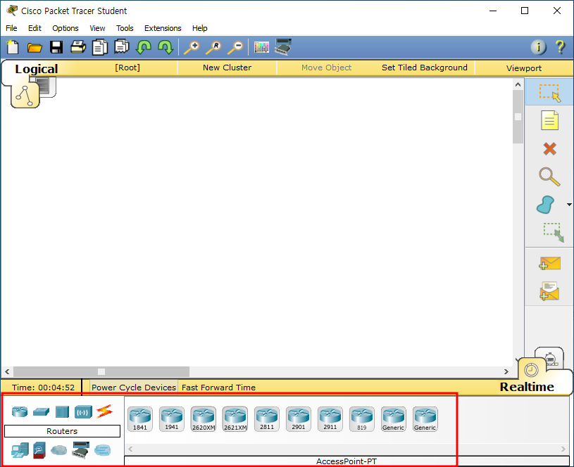 패킷 트레이서에서 라우터를 추가할 때, 사용할 인터페이스 개수를 선택할 수 있다. 이 인터페이스 개수를 선택하면, 라우터 아이콘에 해당 인터페이스 개수가 표시된다.