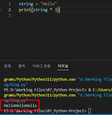 2. 반복(*): 이 연산자는 문자열을 지정된 횟수만큼 반복하는 데 사용됩니다.