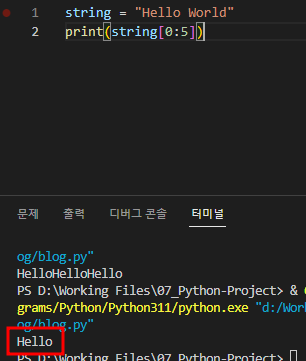 result = string[0:5] # 인덱스 0부터 4까지의 문자 추출