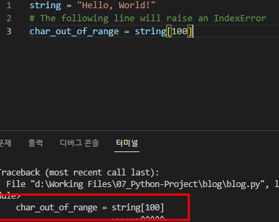 3) 문자열 범위를 벗어난 색인이 있는 문자에 액세스하려고 하면 IndexError가 발생한다는 점을 명심하세요.