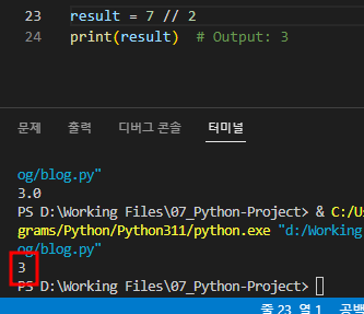 result = 7 // 2