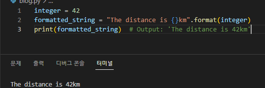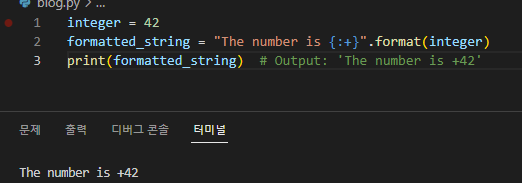 print(formatted_string) # 출력: 'The number is 42'