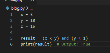 result = (x < y) and (y < z)