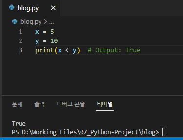 print(x < y) # Output: True