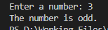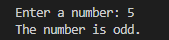 이 코드는 사용자로부터 입력받은 숫자를 확인하여, 해당 숫자를 2로 나눈 나머지가 0이면 짝수로 판단하고, 그렇지 않으면 홀수로 판단합니다. 이를 통해 주어진 숫자가 짝수인지 홀수인지를 출력합니다.