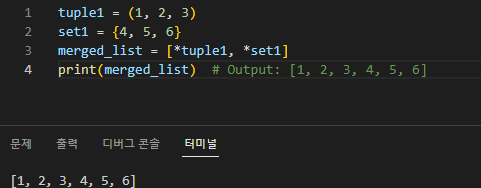 3. 튜플 또는 집합에서 요소 압축 풀기: