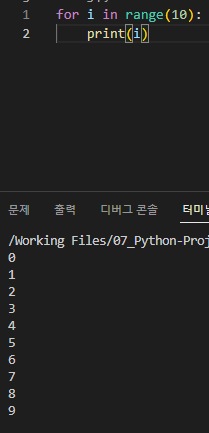 1. 0부터 9까지의 숫자를 출력하는 예시:
