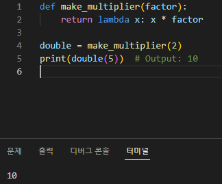 4. 함수 또는 람다 함수 반환: 함수는 변수에 할당하고 나중에 호출할 수 있는 다른 함수 또는 람다 함수를 반환할 수 있습니다.