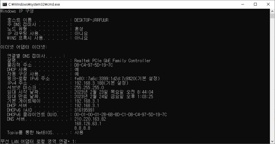 IPv4 주소가 192.168.3.188로 되어 있는 것을 볼 수 있다.