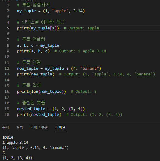 다음은 튜플을 만들고 사용하는 방법의 예입니다.