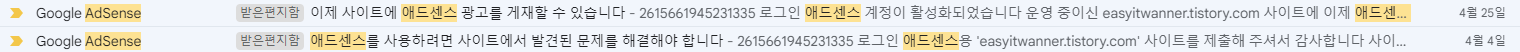 이렇게 신청을 완료하면 블로그에 대해 자동으로 확인하고 승인 여부를 확인해 로그인한 메일로 내용을 보내주게 됩니다. 기간은 2주정도 걸린다고 하지만 짧으면 4일, 길면 2주가 넘어서 3~4주까지도 진행됩니다.