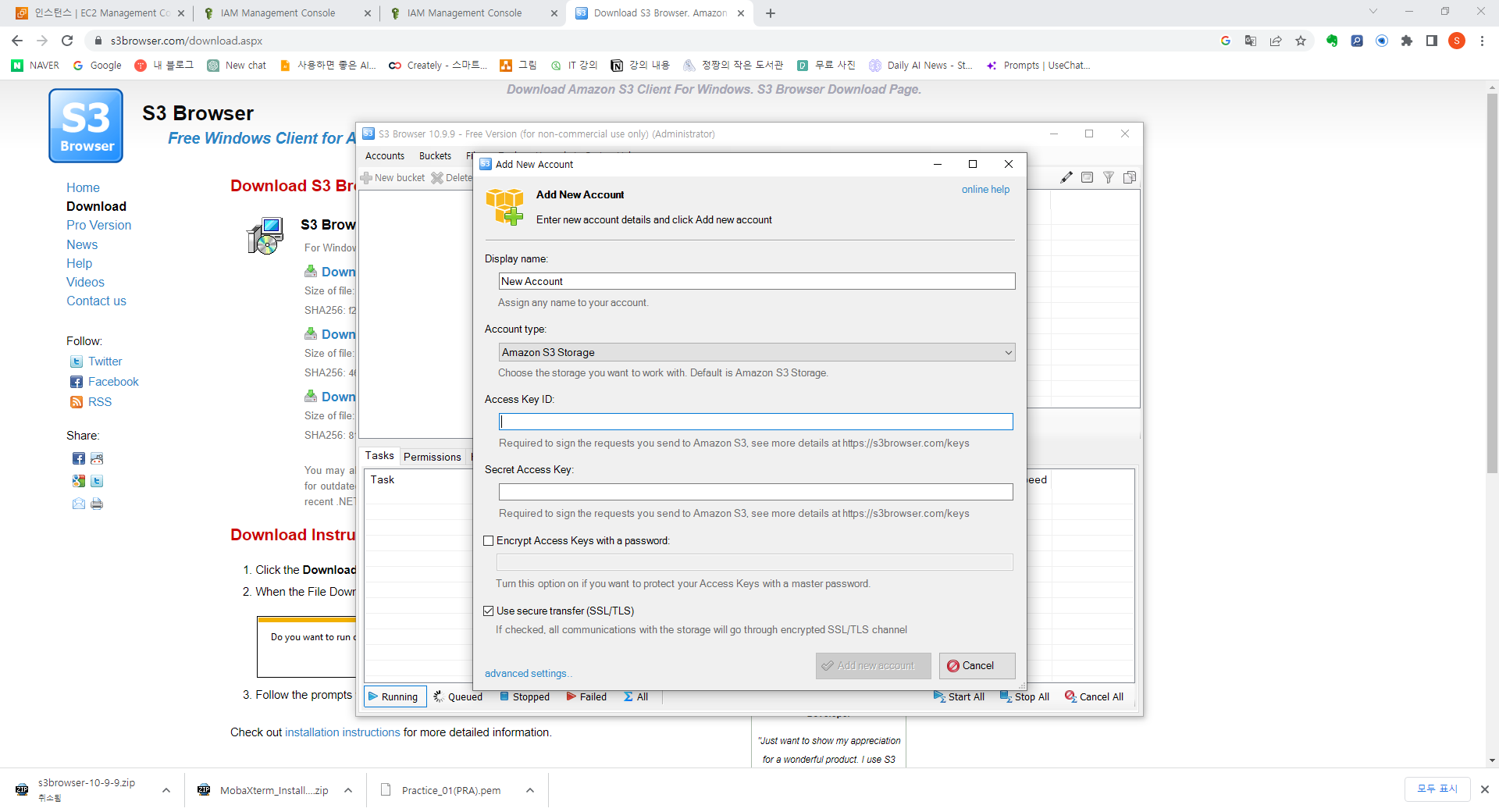 S3 브라우저는 Amazon의 보안 데이터 암호화 방식을 지원합니다. 또한 파일 전송 속도를 크게 높일 수 있는 Amazon S3 전송 가속을 지원합니다. - 폴더 동기화