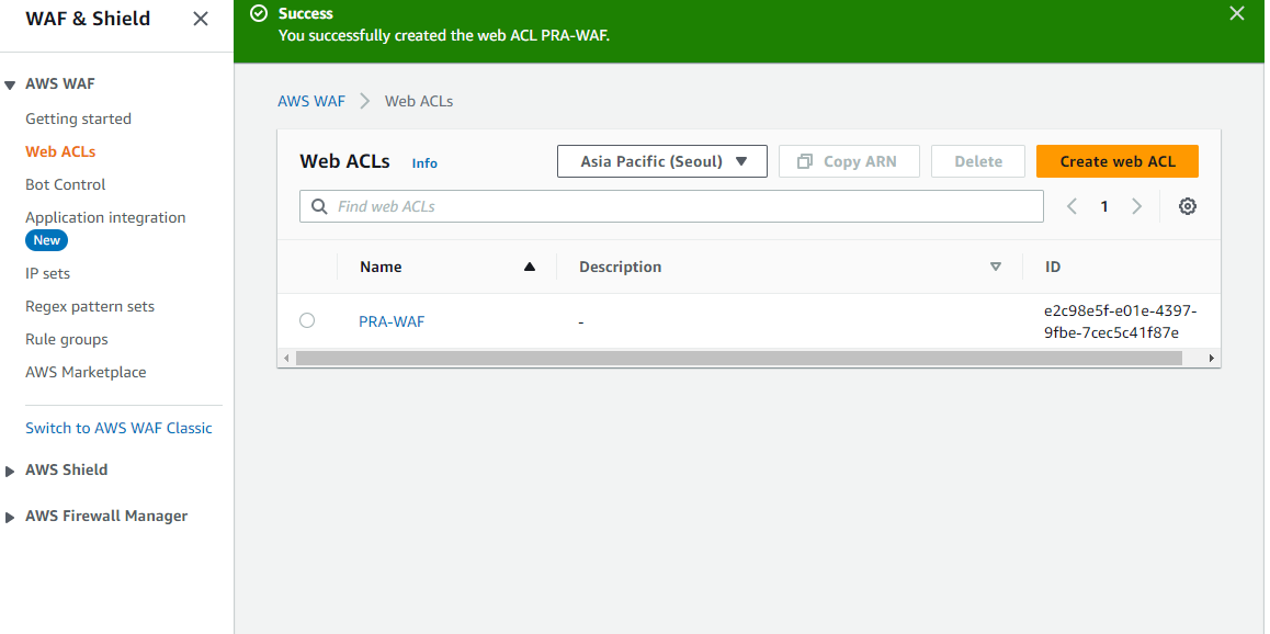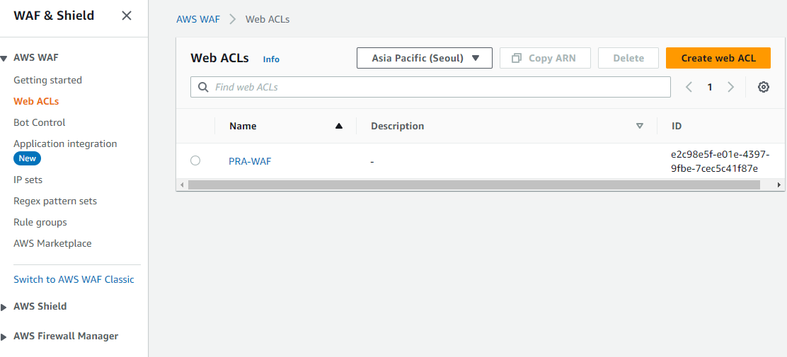 WAF를 간단하게 설명하면 AWS에서 제공하는 사용량만큼 요금을 지불하는 방화벽 시스템이라고 생각하면 좋을 것 같습니다. 아래에서 설정 절차를 알려드리겠습니다. 구성에 대한 자세한 설명은 기본 설정 방법을 마치고 한번에 진행할 예정입니다.