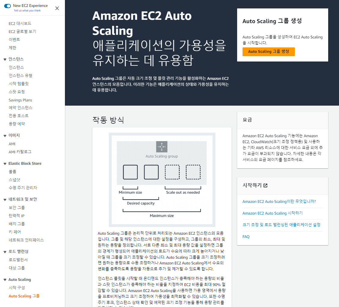1. "Auto Scaling 그룹 생성" 버튼을 클릭해줍니다.