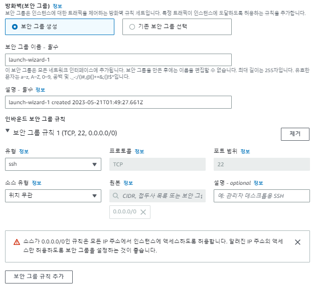 각 인스턴스는 가상 방화벽처럼 작동하여 하나 이상의 인스턴스에 대한 트래픽을 제어하는 보안 그룹과 연결될 수 있습니다. 인스턴스를 시작할 때 하나 이상의 보안 그룹을 지정할 수 있습니다.