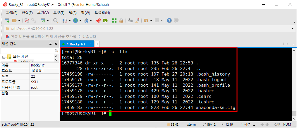 -i : 아이노드 넘버를 같이 표시하는 명령어이다. 이름 앞에 숫자가 함께 표시되는 것을 볼 수 있다.