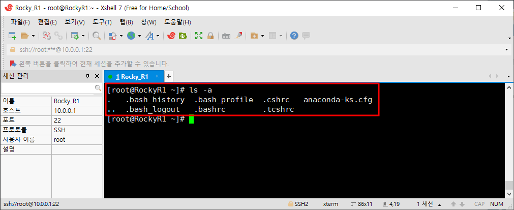 - -a : 숨겨진 것들을 표시해준다. 숨겨진 것들은 이름 앞에 .(온점)이 붙는다.