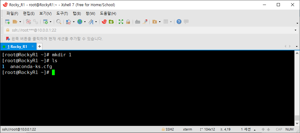 생성 명령어는 mkdir로 make directory라고 생각하면 좋다. 아래와 같은 명령어를 입력하면 "1"이라는 디렉토리(폴더)가 만들어지는 것을 확인할 수 있다.