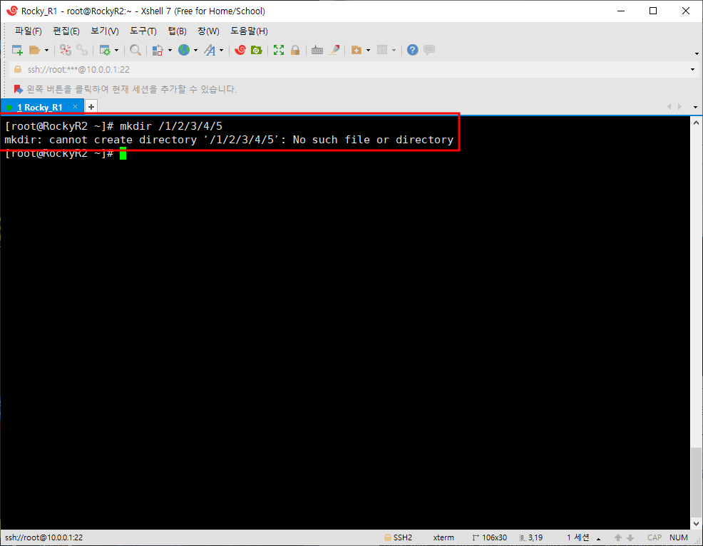 하지만 이 명령어를 사용할때에는 디렉토리가 존재해야 명령어를 적용할 수 있는데, 예를 들면 다음 이미지와 같다.