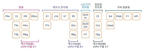 - 인스턴스 유형 및 크기 - CPU와 RAM, 스토리지의 용량(기술적 요구 사항)