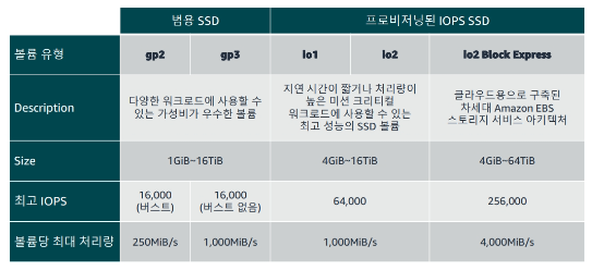 - IOPS가 64,000개를 초과하거나 처리량이 1,000MiB/s보다 높아야 하는 경우