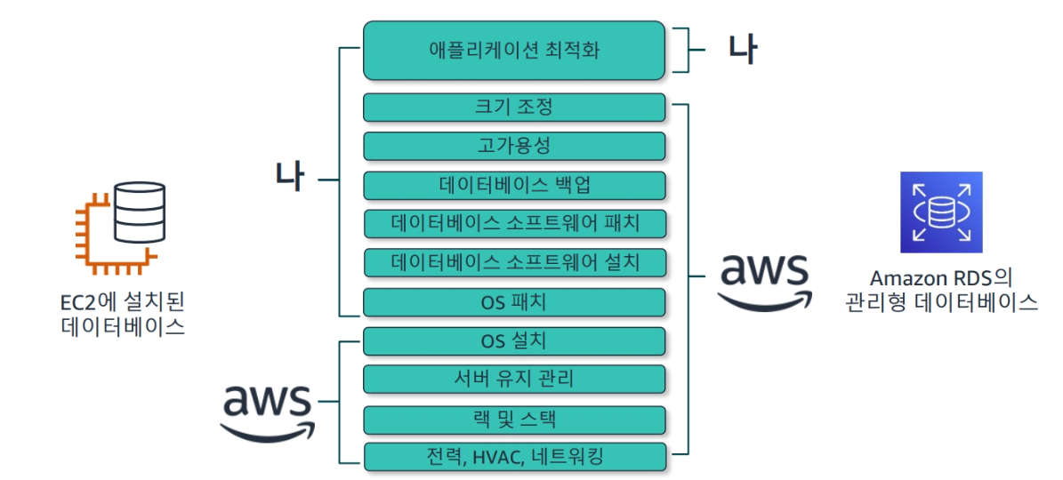- 관리형 데이터베이스 서비스를 사용 시에는 획일적인 데이터베이스 관리 업무를 수행할 필요가 없습니다.