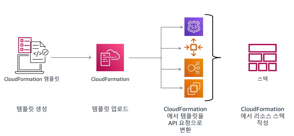 스택의 모든 리소스는 해당 스택의 CloudFormation 템플릿을 통해 정의됩니다. 스택을 생성, 업데이트 또는 삭제하여 리소스 모음을 관리할 수 있습니다. 예를 들어 웹 서버, DB, 네트워킹 규칙 등 웹 애플리케이션을 실행하는 데 필요한 모든 리소스를 포함할 수 있습니다. 더 이상 웹 애플리케이션이 필요하지 않은 경우 스택을 삭제할 수 있습니다. 그러면 관린 리소스가 모두 삭제됩니다.