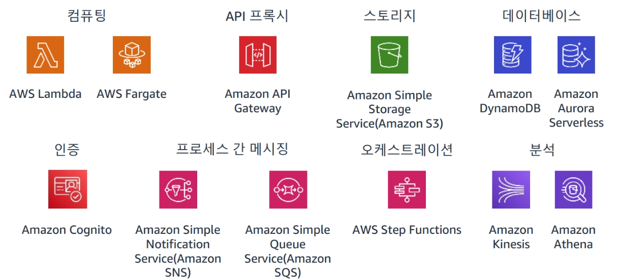 서버리스에는 다음과 같은 서비스들이 있습니다.