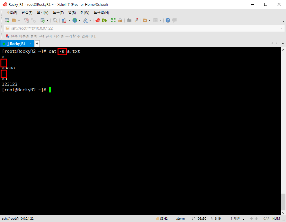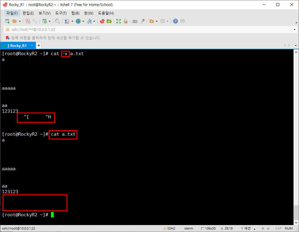 위의 내용지우기 부분에서 설명했던 것들은 cat만 사용했을 때 보이지는 않는다. 하지만 v 옵션을 가지고 볼 수 있다.