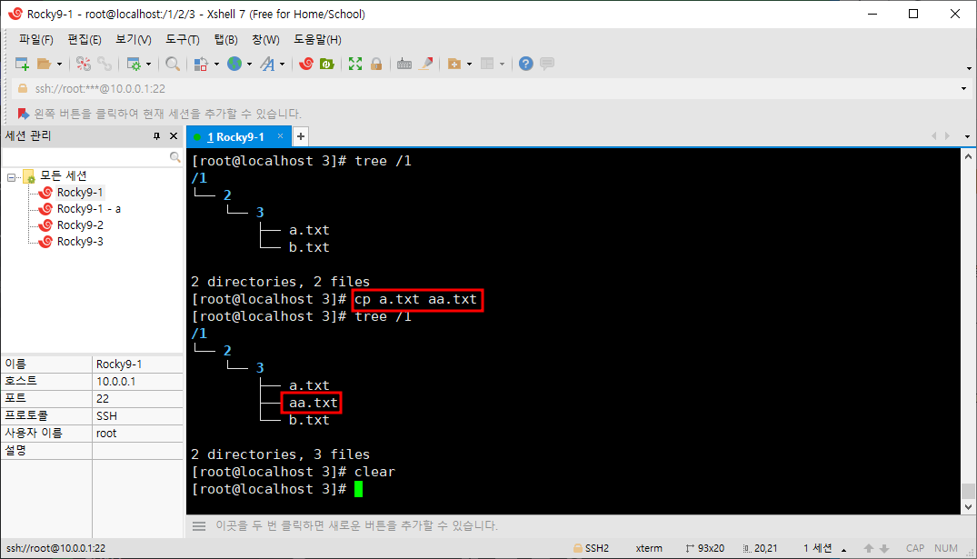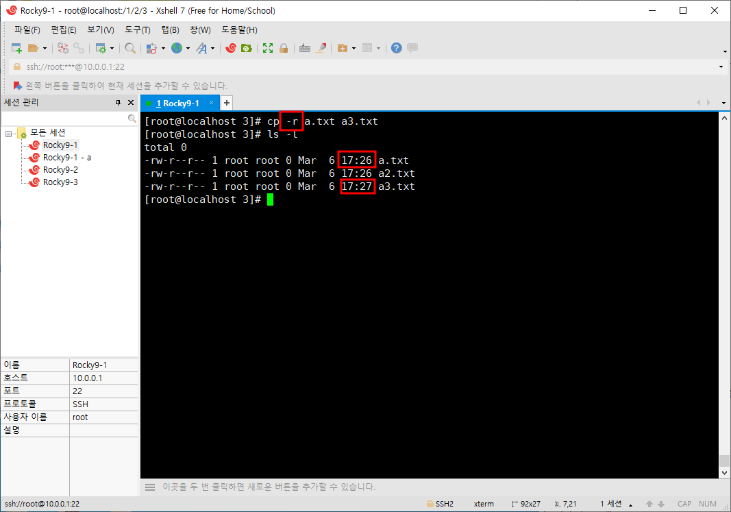 - cp -a : 파일 및 디렉토리를 원래 상태를 유지하면서 복사한다. 즉, 소스 파일의 모든 속성(파일 권한, 소유자, 타임스탬프 등)을 대상 파일에 복사한다. 재귀적으로 디렉토리를 복사하며 하드 링크를 사용하여 파일을 복사한다. 원본 파일에 대한 변경 사항을 복사본에 반영하지 않으며, 대상 파일이 이미 존재하는 경우 덮어쓴다.