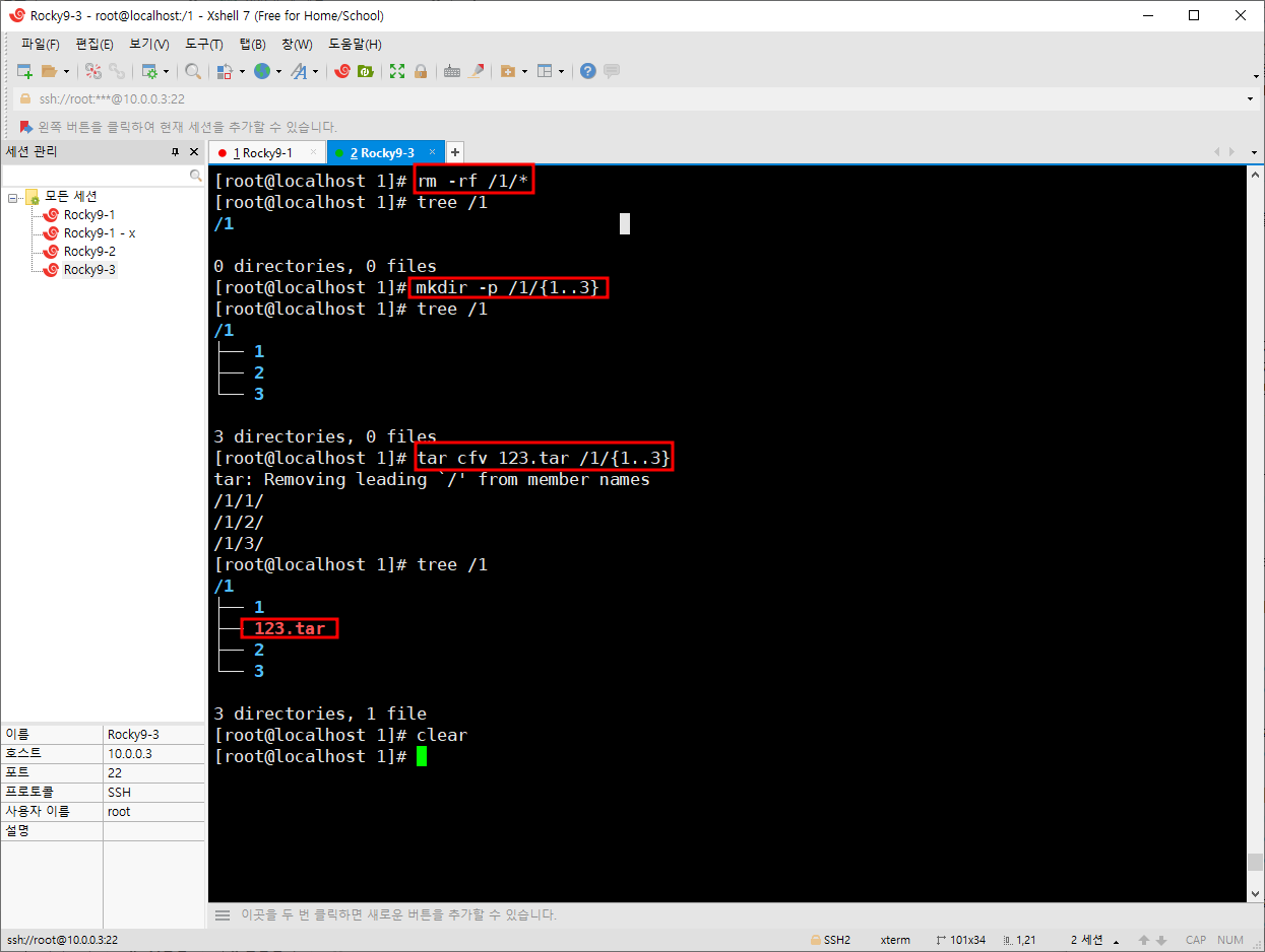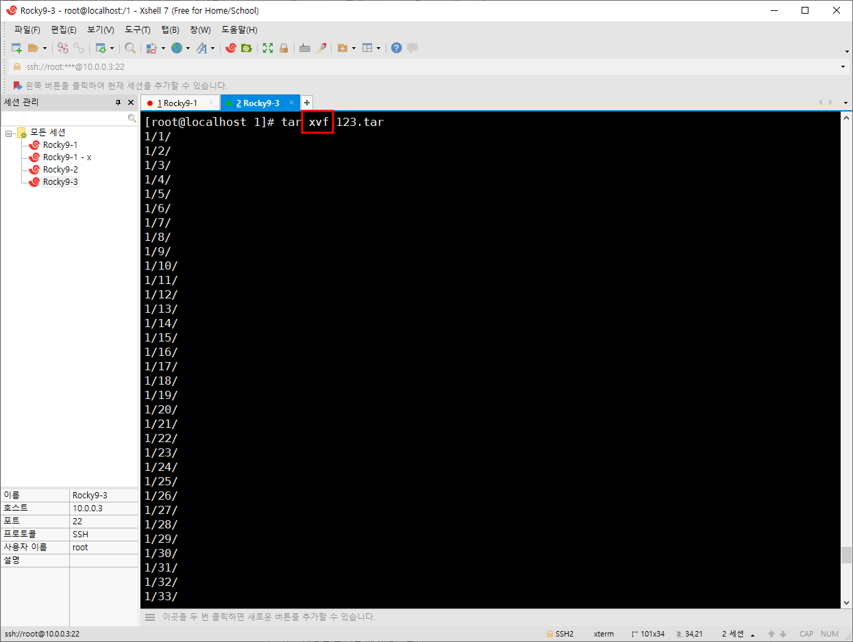 모아놓은 디렉토리와 파일을 해제하는 명령어이다. 옵션에 f는 필수이니 꼭! 잊지 말자. ls나 tree를 사용하면 tar가 풀려있는 모습을 볼 수 있다.