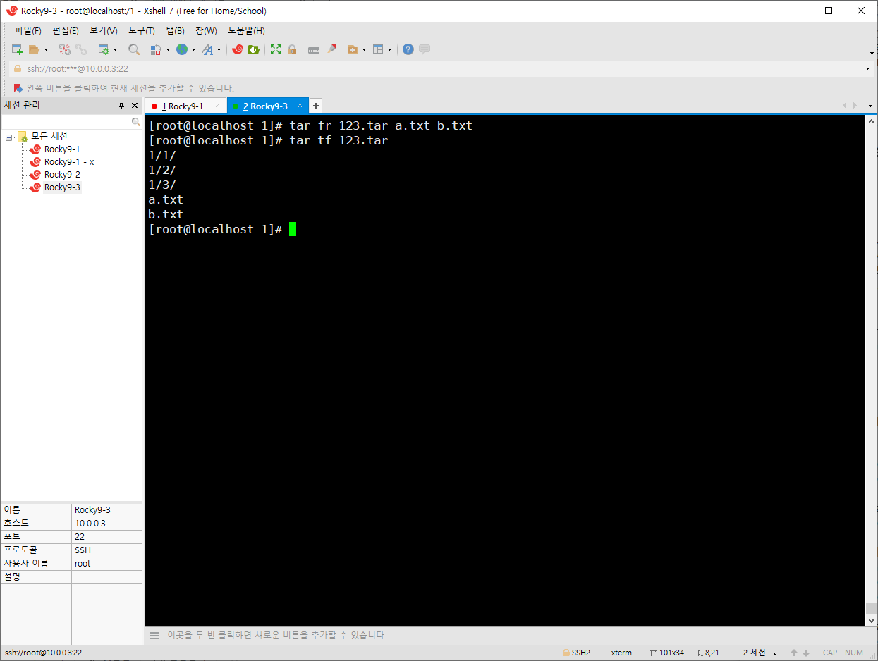 r 을 이용해 a.txt, b.txt가 tar안으로 잘 들어간 것을 확인할 수 있다.