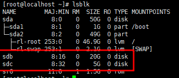 이 후 장치를 작동시켜 lsblk 명령어(옵션은 따로 없다)로 확인해보면 잘 적용된 것을 볼 수 있다.