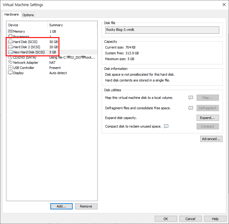 조만간 작성할 작업에 필요한 하드웨어 2개를 각각 20GB, 5GB로 만들었다.