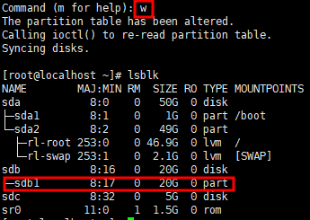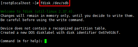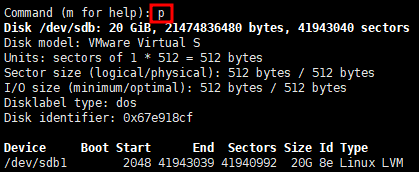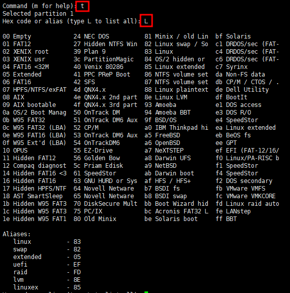 3) 마지막 섹터 : 파티션을 사용할 용량을 지정하는 것으로 K, M, G 와 같이 용량단위로 간편하게 설정이 가능하다. 공백으로 둔다면 남은 공간을 모두 지정한다.