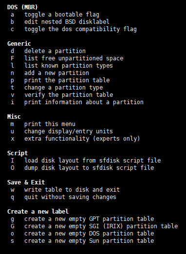 fdisk는 사용자 친화적인 메뉴 기반의 인터페이스를 제공하며, 파티션의 생성, 삭제, 크기 조정, 이동, 복사 등 다양한 작업을 할 수 있다.