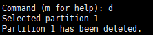 파티션은 하나일 경우 바로 지워지고, 여러 개라면 지정해서 지울 수 있다. 파티션이 여러개이고 지울 때 파티션을 지정하지 않는다면 앞에서부터 1개씩 지워진다.