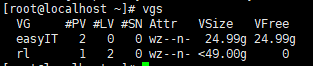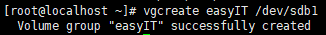 vgcreate (생성할 vg명) (pv명1) (pv이름2)...
