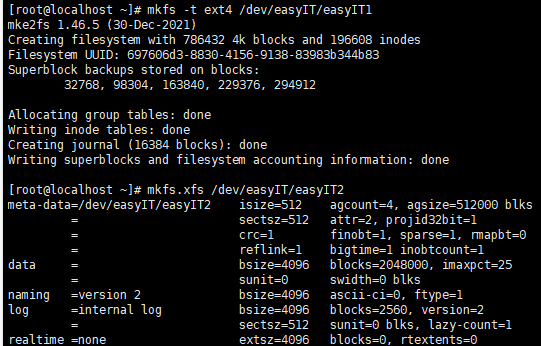 위와 같이 -t 를 사용해 파일 시스템을 지정할 수도 있지만, mkfs.xfs, mkfs.ext4처럼 바로 지정하는 방법도 있다.