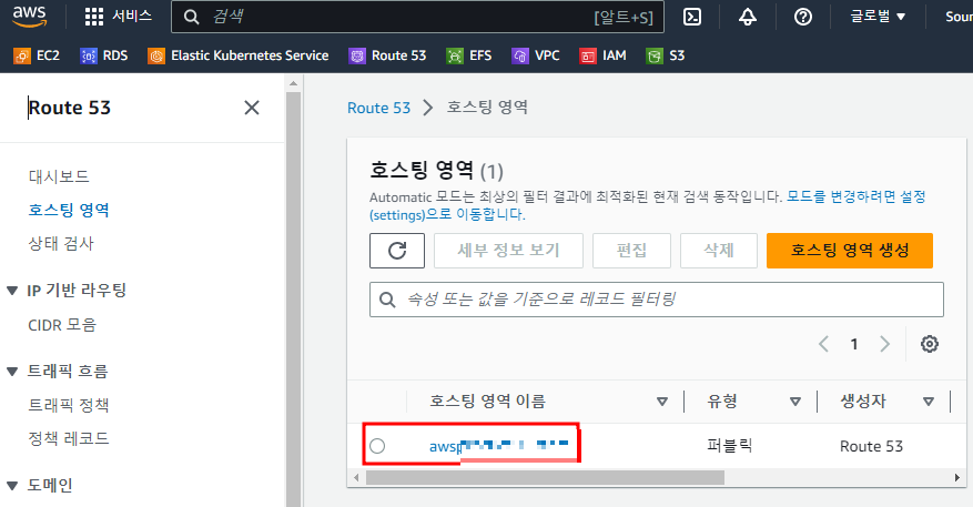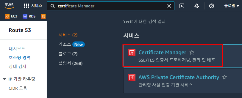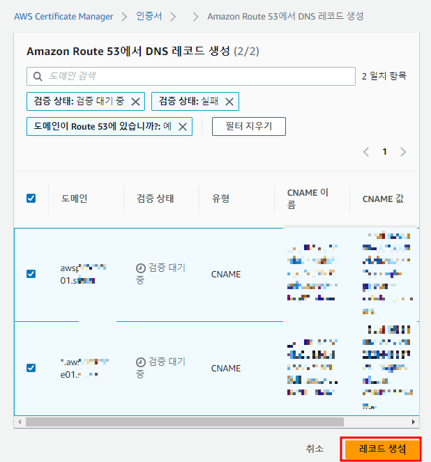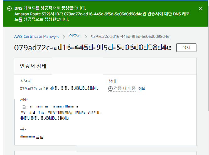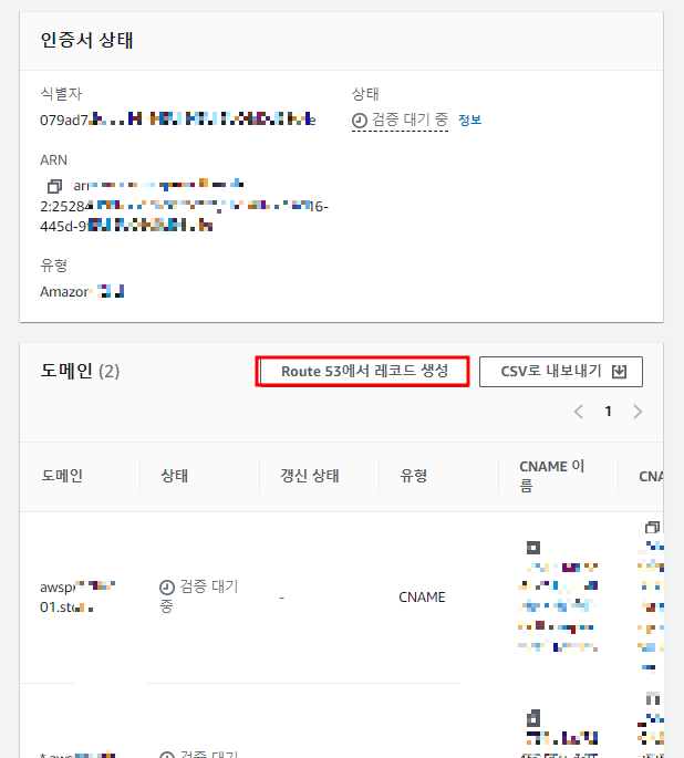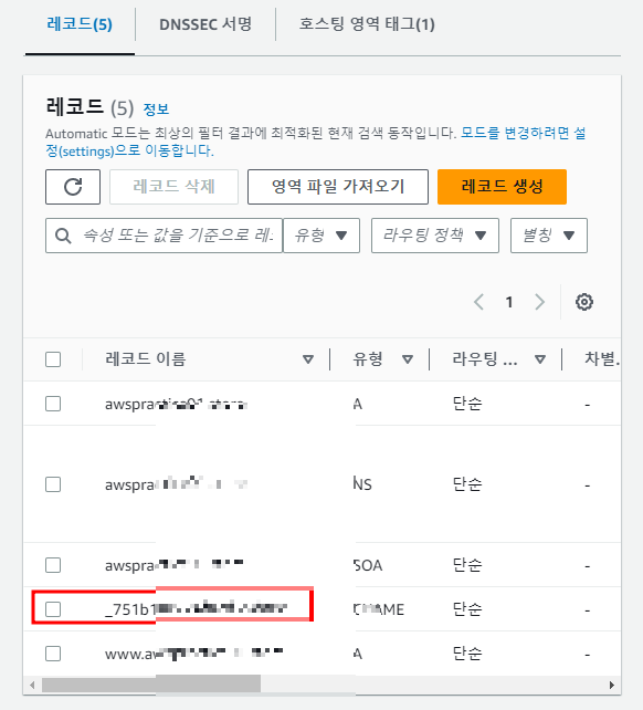 Route 53에서 인증서가 잘 등록 되었는지 확인할 수 있습니다.