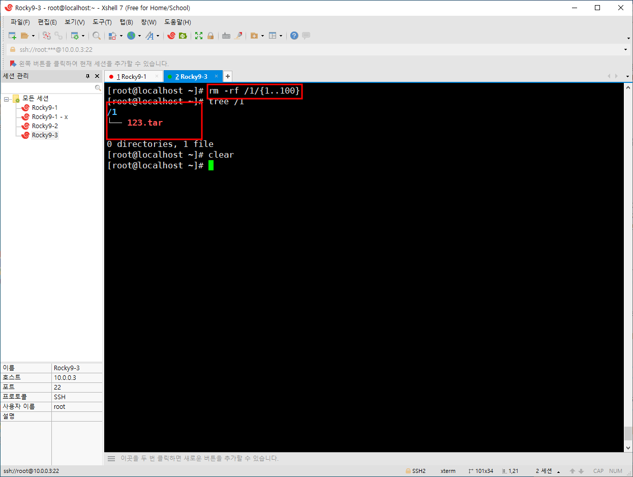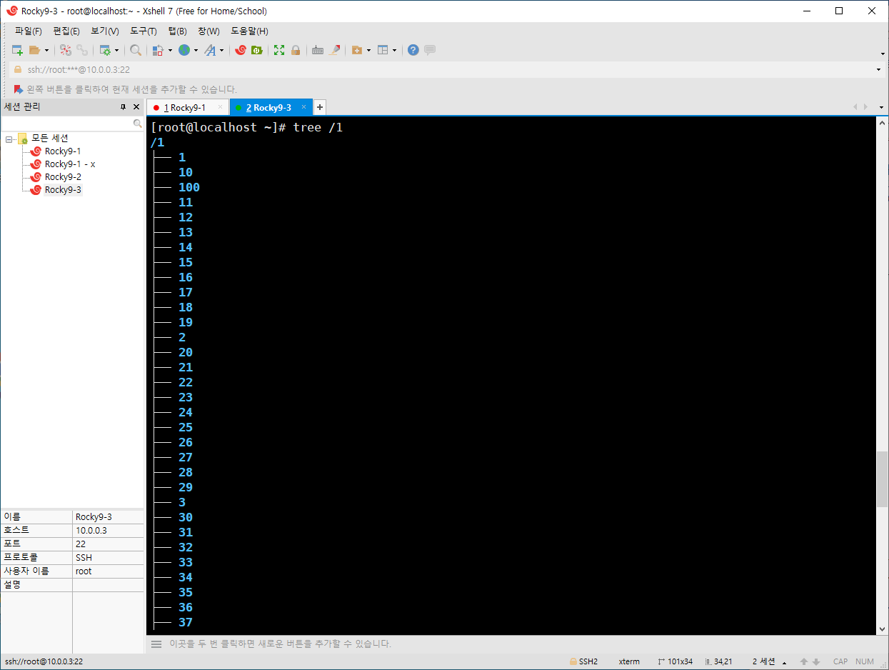 /1 디렉토리에 1~100 디렉토리를 만들었다.