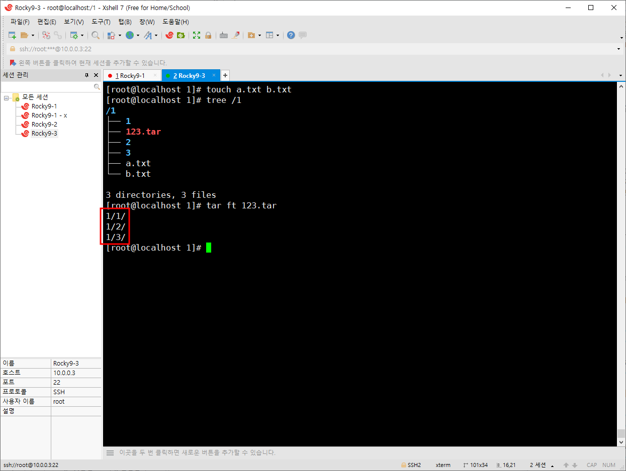 r 을 이용해 a.txt, b.txt가 tar안으로 잘 들어간 것을 확인할 수 있다.