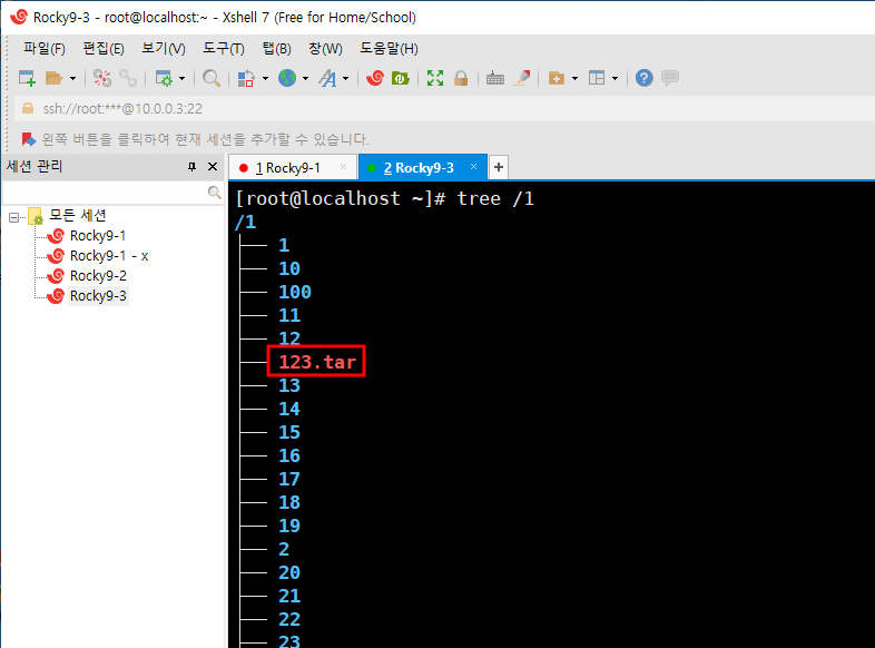 해당 옵션은 tar를 굳이 다시 풀지 않고 내용을 확인하는 명령어이다. 위와 똑같이 출력이 되지만, tree나 ls로 확인하면 따로변한것이 없다는 것이 특징이다.