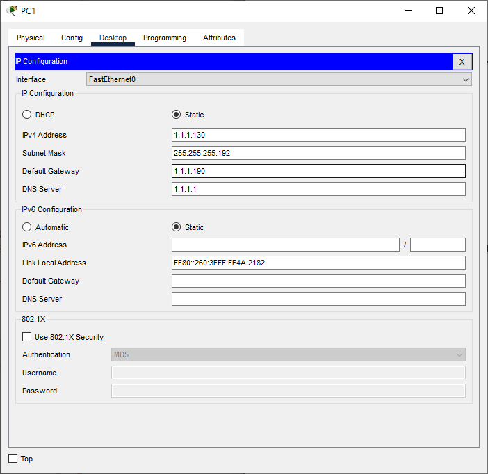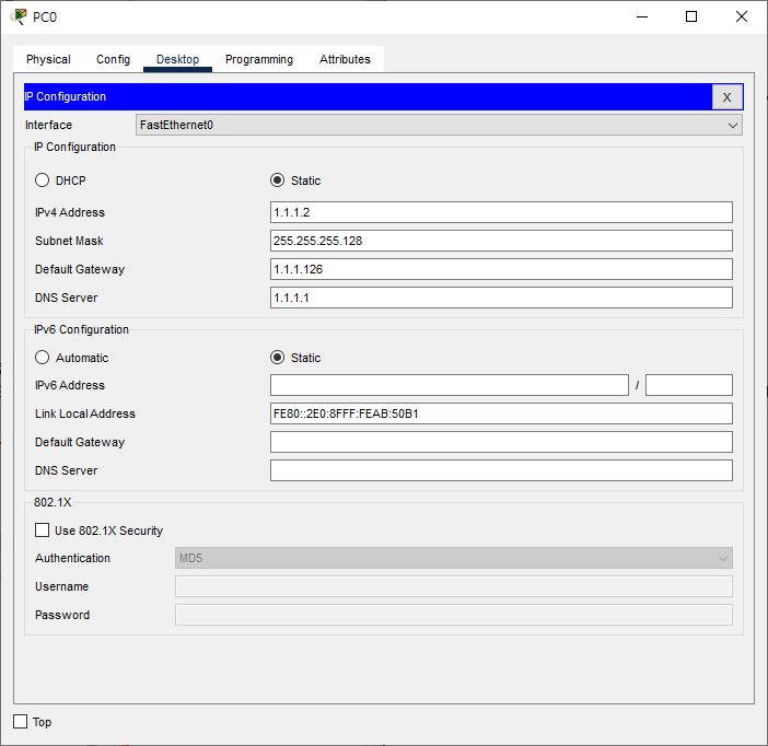 ip route 1.1.1.128 255.255.255.128 f0/1