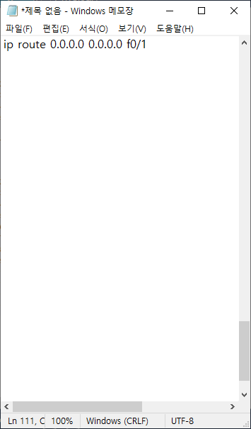 2. no ip route 0.0.0.0 0.0.0.0 f0/1 (이전 명령어 취소)