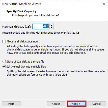 멀티플 파일은 가상화 장치 파일을 2G 단위로 나누기 위한 옵션으로 눈에 띄는 성능저하가 있다고 하니 single로 선택해준다.